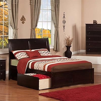 Atlantic furniture madison full platform bed with flat panel foot board and twin size urban trundle bed in espresso.