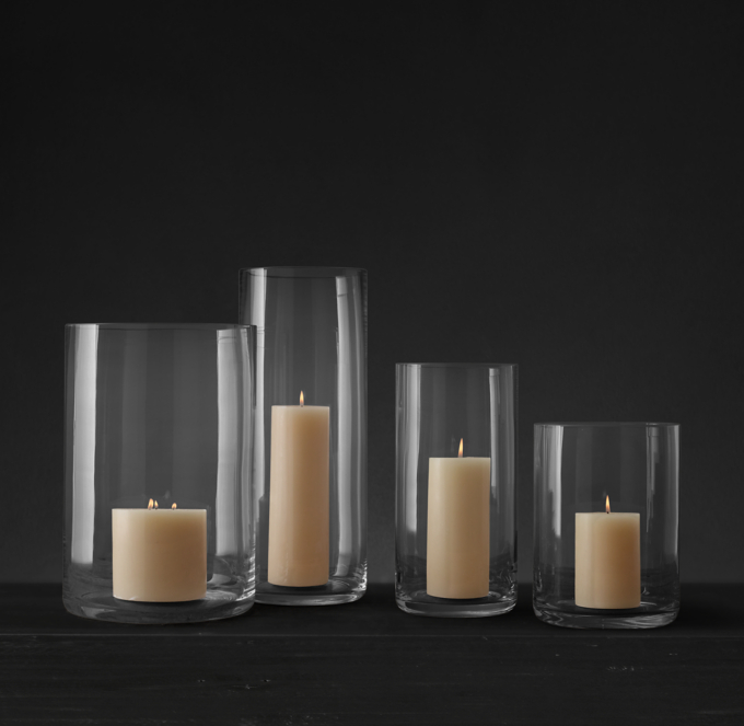 A glass candle hurricane is a versatile addition to the living room, too.